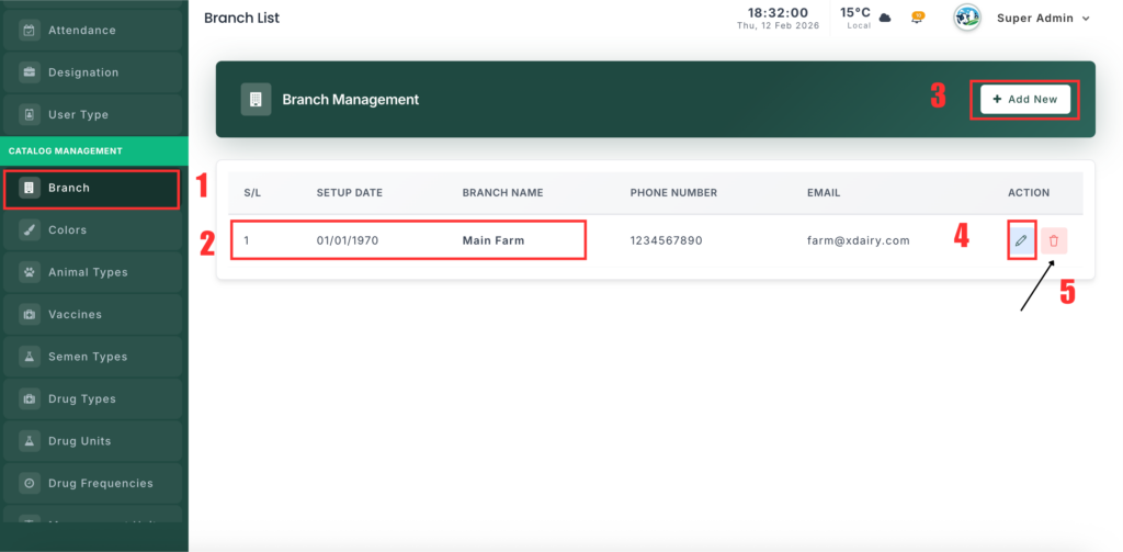| Single Farm | Create one branch (e.g., “Main Farm”) |