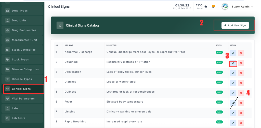 3️⃣ Edit a Clinical Sign #