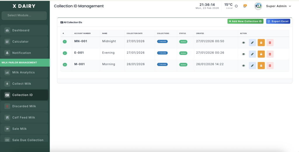 The Milk Collection module is used to record daily milk production from your livestock. The system supports individual, group, and bulk collection methods to match your farm workflow.